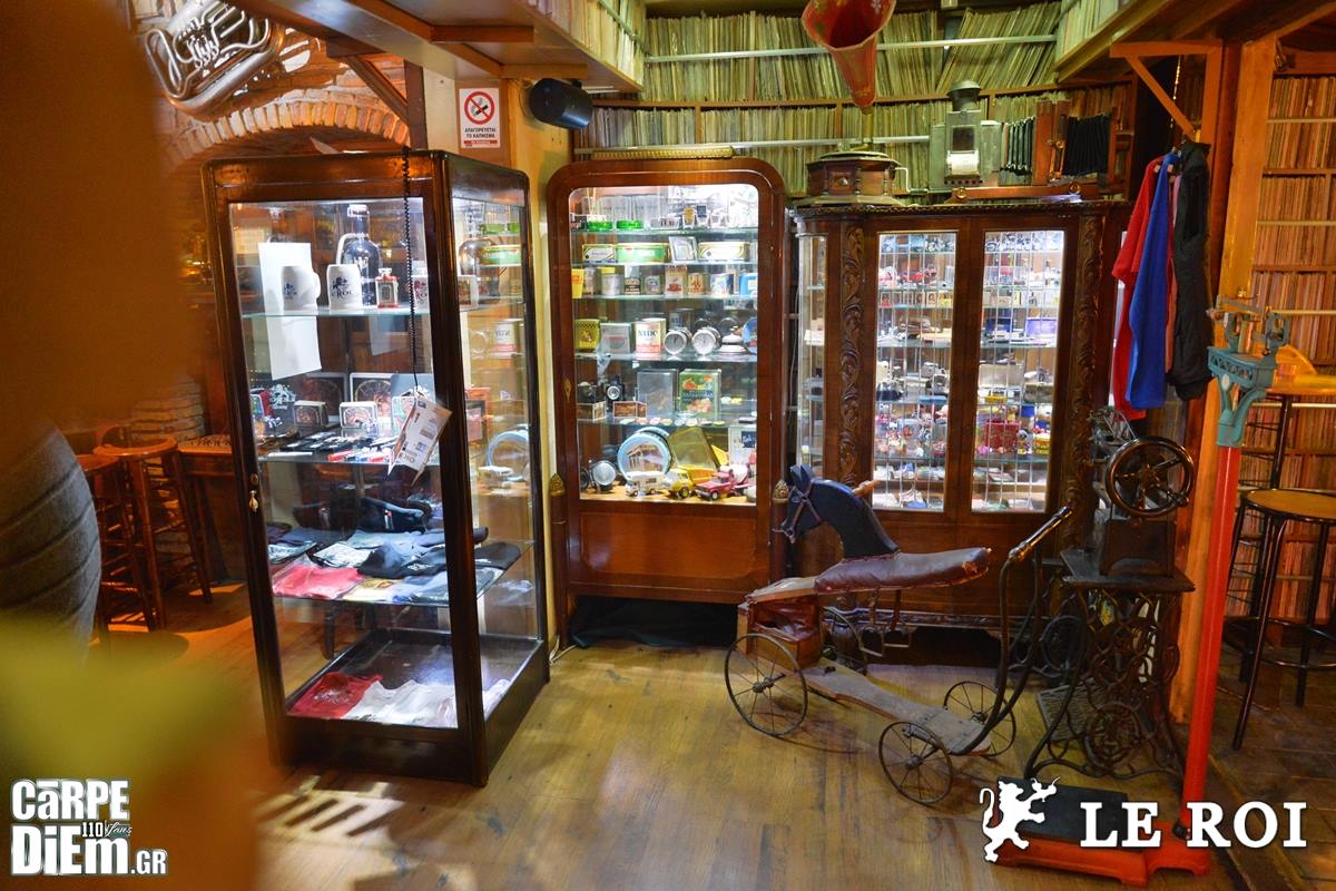 Με τα χρόνια, ο χώρος του Le Roi άρχισε να γεμίζει με αντικείμενα που κουβαλούσαν τη δική τους ιστορία. Παλιά jukebox, φλιπεράκια, αντλίες βενζίνης, ζυγαριές, ταξίμετρα και δεκάδες άλλα vintage κομμάτια βρέθηκαν σταδιακά στη θέση τους μέσα στο bar. Πολλά από αυτά ανακαλύφθηκαν σε παλαιοπωλεία και αγορές αντικειμένων σε διάφορες χώρες της Ευρώπης, πριν αποκτήσουν νέα ζωή στους τοίχους και στις γωνιές του Le Roi. Σιγά-σιγά δημιουργήθηκε μια ιδιαίτερη συλλογή που δεν λειτουργεί απλώς ως διακόσμηση.